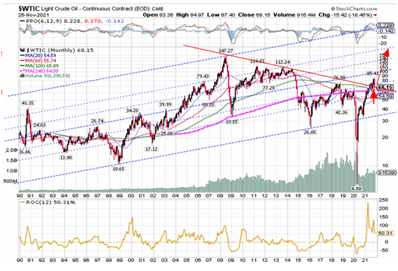 쥬라기: 한편, 금요일 기술 대형주의 하락에 동반하여 원유 가격이 급락하였죠.