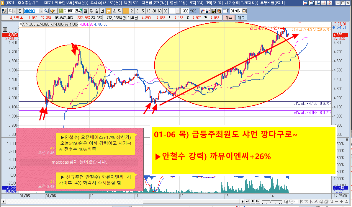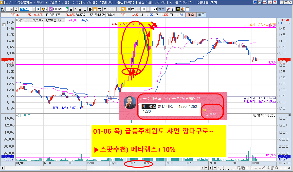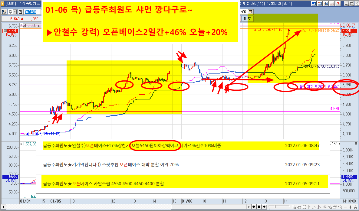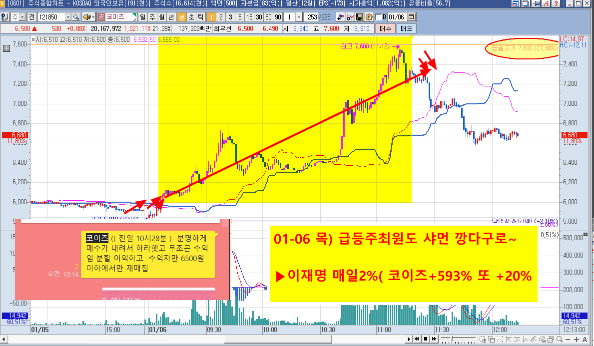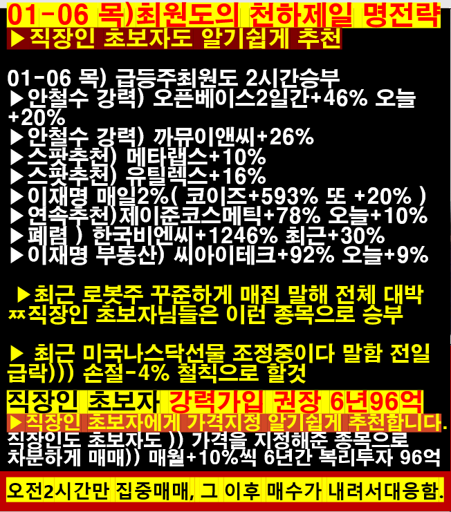 01-06 목) 급등주최원도 2시간승부
