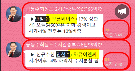 ▶안철수 강력) 오픈베이스2일간+46% 오늘+20%